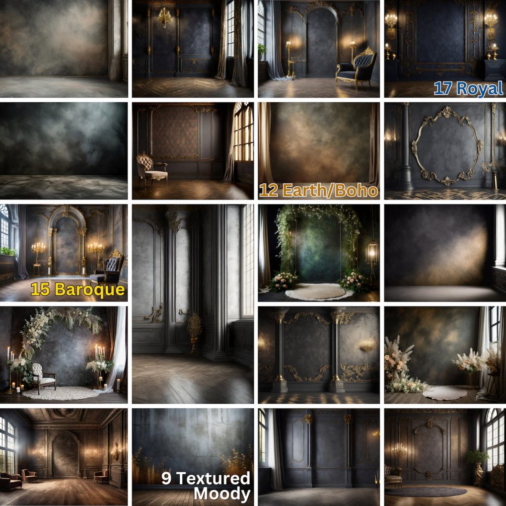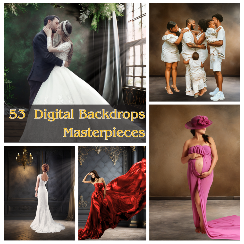 53 Digital Backdrops | Earth Tone, Boho, Royal, Baroque, Moody | Masterpieces. Create Stunning Visuals for Maternity, Wedding, Modeling, and more
